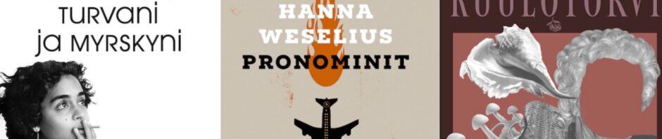 Hanna Weselius: Pronominit. Ei ollut helppo kirja, mutta kannattaa antaa mahdollisuus. Ilmastonmuutoksen vuoksi dystooppisessa lähitulevaisuudessa yhteiskuntien rakenteet ovat romahtaneet, vedenpinta noussut tai laskenut, sade tai kuivuus tai helle tai pakkaset jatkuvat ennustamattomasti ja tympeää sientä kasvaa joka paikassa. Osa ihmisistä päättää lähteä, osa jäädä, jotkut katoavat.